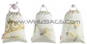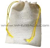 Bags for retail or industrial use. Single or double drawstring. Can be personalized according to particular requirements. Single, double, colored strings with same or different color stitch.