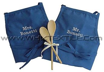 Chef or Kitchen Aprons made in cotton, poly cotton, twill, etc. Easy care and stain resistant. Embroidered or Printed of your choice.