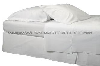 Flat or fitted sheets, T-60 to T-1000, carded or combed cotton made with cotton, poly-cotton, cotton-viscose, bleached white, greige or dyed (pigment, vat, reactive, etc) in different weaves as plain, percale, sateen, twill, drill, bfc, hi/low bfc, canvas, automen, gabardine, ribcloth, herringbone, muslin, poplin, oxford, flannel, pima cotton, etc with standard hemming, trim border top, trim border or piping.
